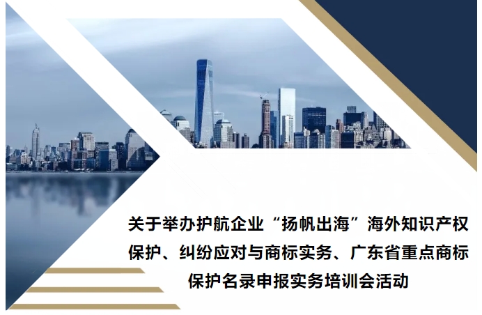 • 關于舉辦護航企業“揚帆出?!焙M庵R產權保護、糾紛應對與商標實務、廣東省重點商標保護名錄申報實務培訓會活動